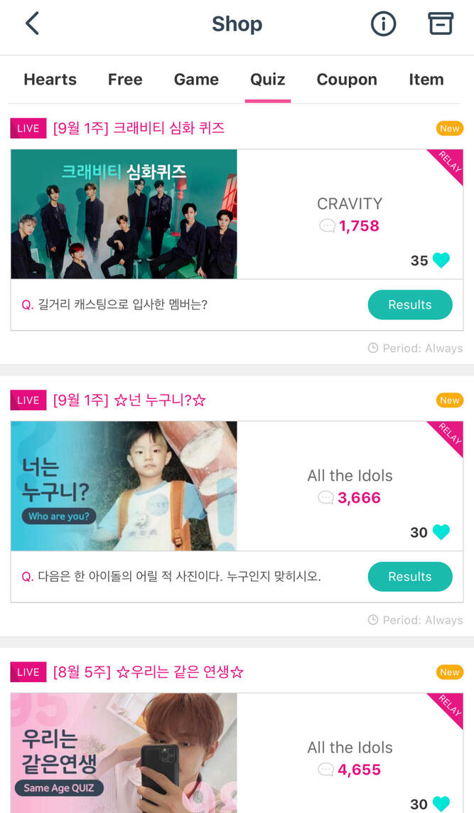 🔸los Quizzes son preguntas de Idols en las que dan varias opciones y debes responder bien todas para ganar los corazones azules 💙